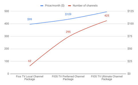 You can get 1000+ channels from some cable providers but, on the whole, these aren’t the main channels that people are watching. A BusinessInsider article citing a Citi analysts report suggests that of 200 channels, the average consumers only watch 17, or 8.5%. And that number is falling over time while the cost of cable increases. The Citi report suggests that cable companies are over profiteering.