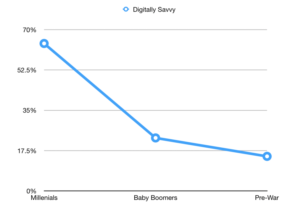 I believe this is based on the fact that cable TV tends to be popular with older age groups possibly because this is what they are used to. Research by Nominet in the UK supports this thesis, with their extensive research in April 2017 showing that as adults age, their ability with technology reduces. While 64% of Millenials consider themselves “digitally savvy”, that number drops to 23% among Baby Boomers, and 15% among the Pre-War generation.